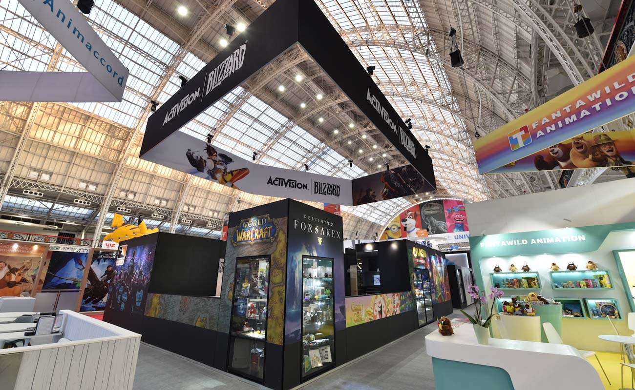 Suspended six metres above their exhibition space, Activision grabbed all the attention with a huge, double sided Fabric Frame. Beneath was a counter-style stand with custom printed graphics applied to the face.